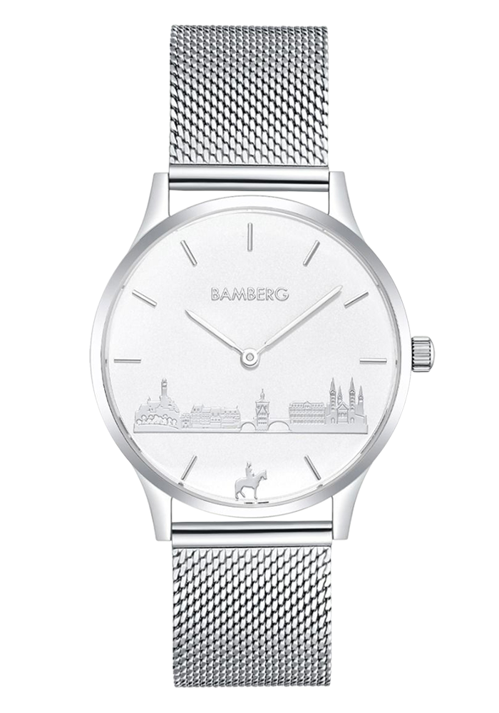 | Zifferblatt: | weiß mit Bambergmotiven: Altenburg – Klein Venedig – Altes Rathaus – das blaue Hellerhaus – Dom – Bamberger Reiter |